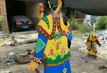 皮影戲又稱(chēng)“影子戲”或“燈影戲”,我國(guó)疆域遼闊,皮影表演在不同地區(qū)經(jīng)過(guò)一系列的演化,形成了不同的流派,現(xiàn)在很少能看到皮影戲表演,但是公園中的皮影戲雕塑豐富著人們的精神世界。一塊白布借著打下的燈光就是舞臺(tái),巴掌大小的人物就是那帝王將相才子佳人。